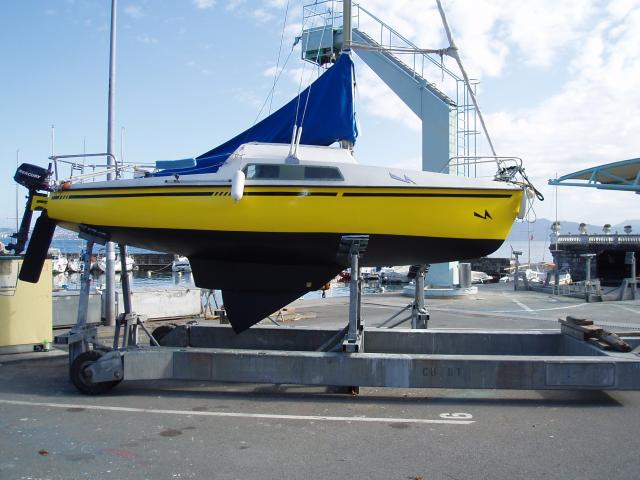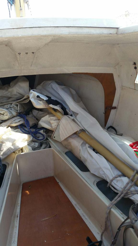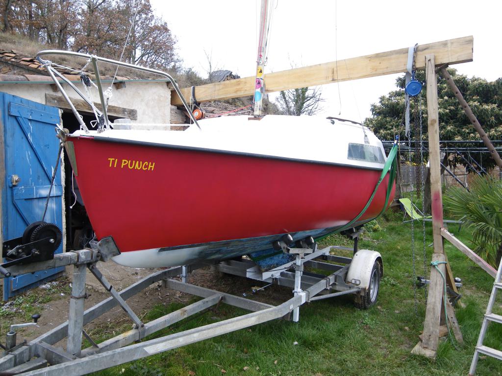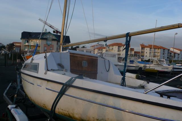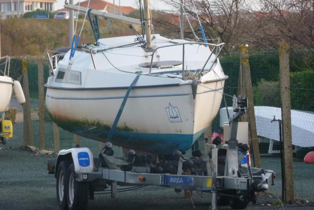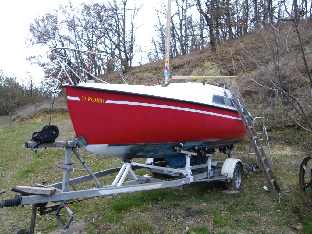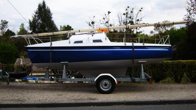 Vendu avec remorque, jeu de voiles, brassières, moteur électrique, ligne de mouillage forain. Intérieur à retaper. Quelques petits travaux. N'a connu que l'eau douce (lac du Salagou). Antifouling fait été 2017.
