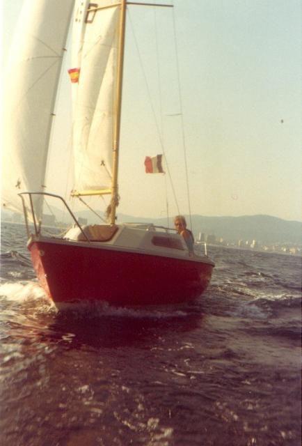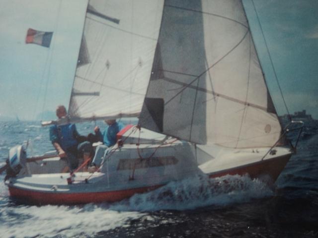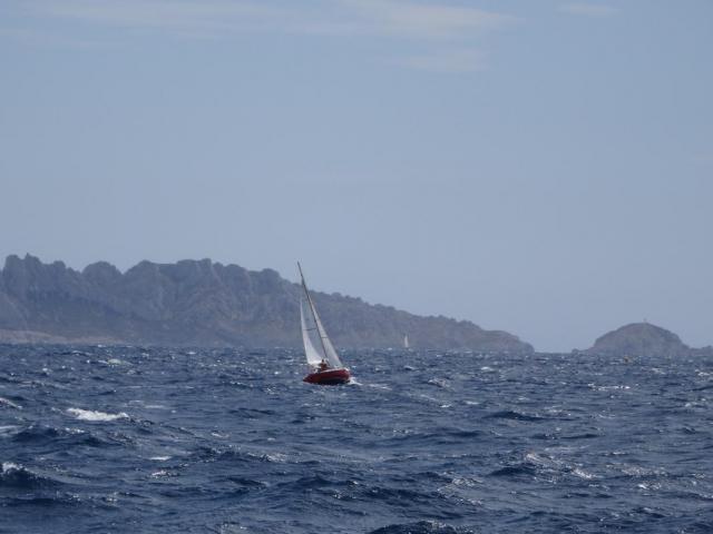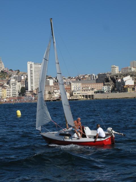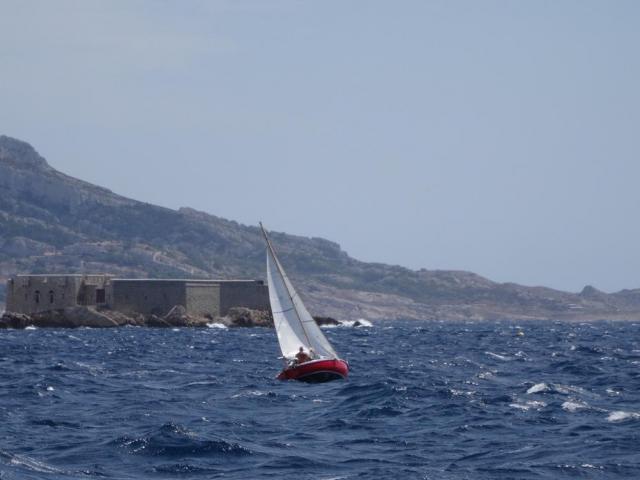 mon edel 5 dans la brise en rade de marseille sous le chateau d'if.......petit voilier trés marin..