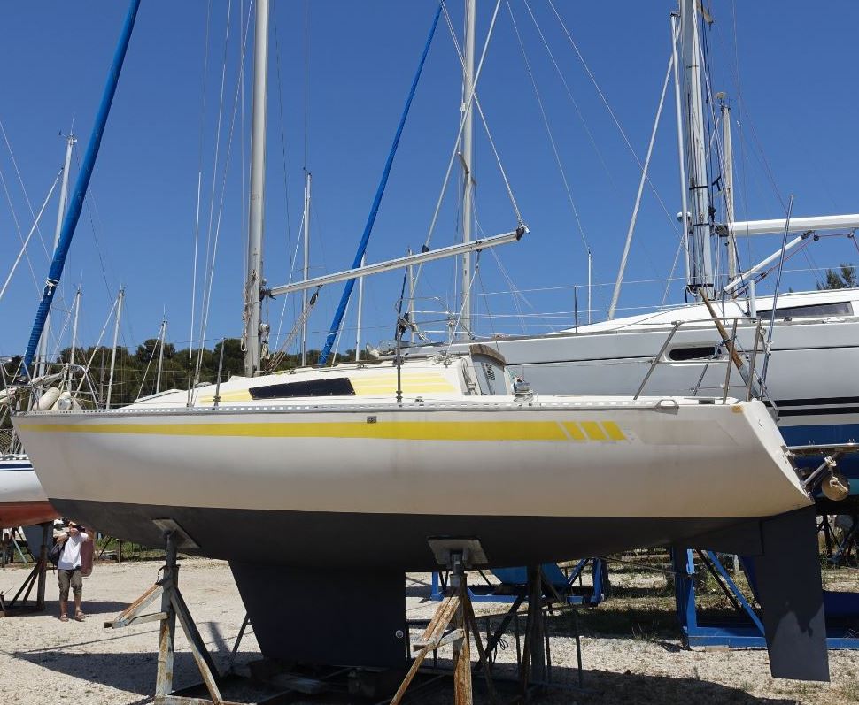 Construit par le chantier Bénéteau (85), le bateau First 28 de 8.6 m a été fabriqué de 1980 à 1983 en 600 exemplaires.
