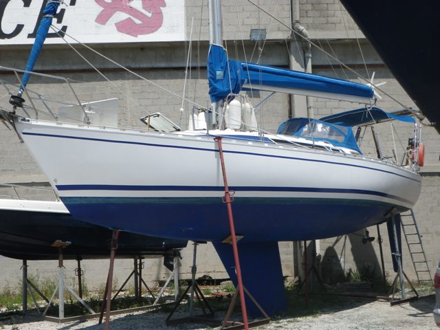 Construit par le chantier Bénéteau (85), le bateau First 345 de 10.55 m a été fabriqué de 1983 à 1988 en 80 exemplaires.