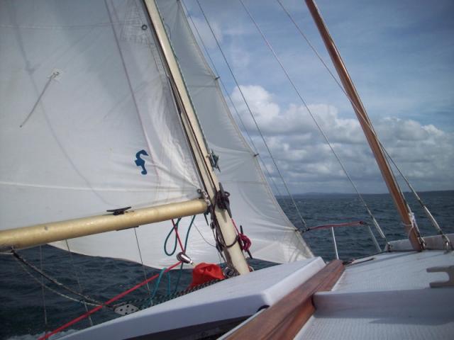 le temps de rejoindre un abri , le bateau passe sans problème c'est un bouchon et remonte bien au vent , au dela de force 7 je tirai des bords carré on avance plus , vaut mieux faire demi tour et s'abriter des que l'on peut je suis allé aussi jusqu'a alméria espagne , cabo de palos porte bien son nom, j'ai bloqué le speedo a 10 pris par un effet de venturie sortie de cap
