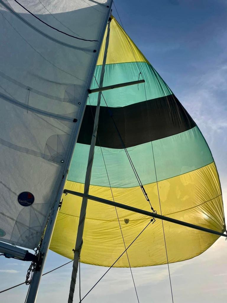 J’ai gréé mon Volum 500 avec un tangon et un SPI Symétrique de 17m2